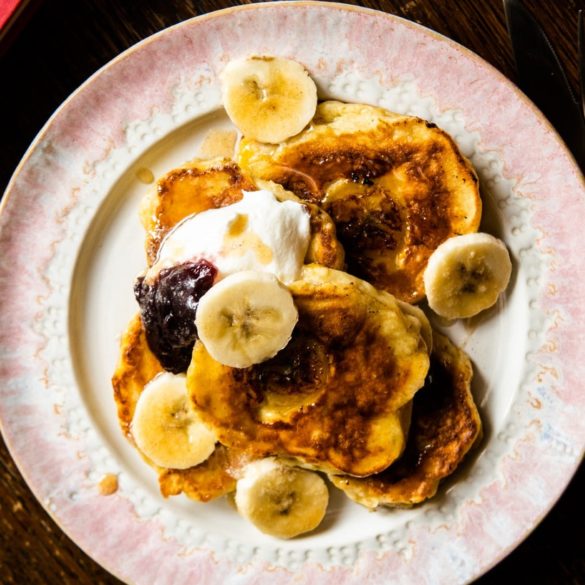 Fluffy Banana Pancakes with Buttered Cinnamon Honey