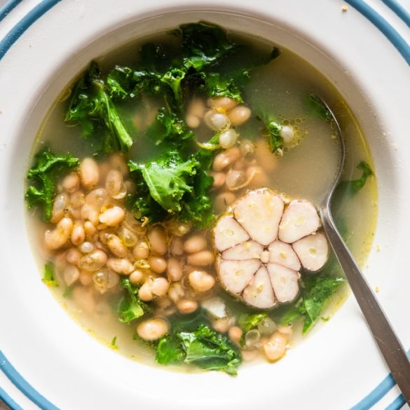 Zupa czosnkowa z fasolą, cytryną i jarmużem + masełko czosnkowe